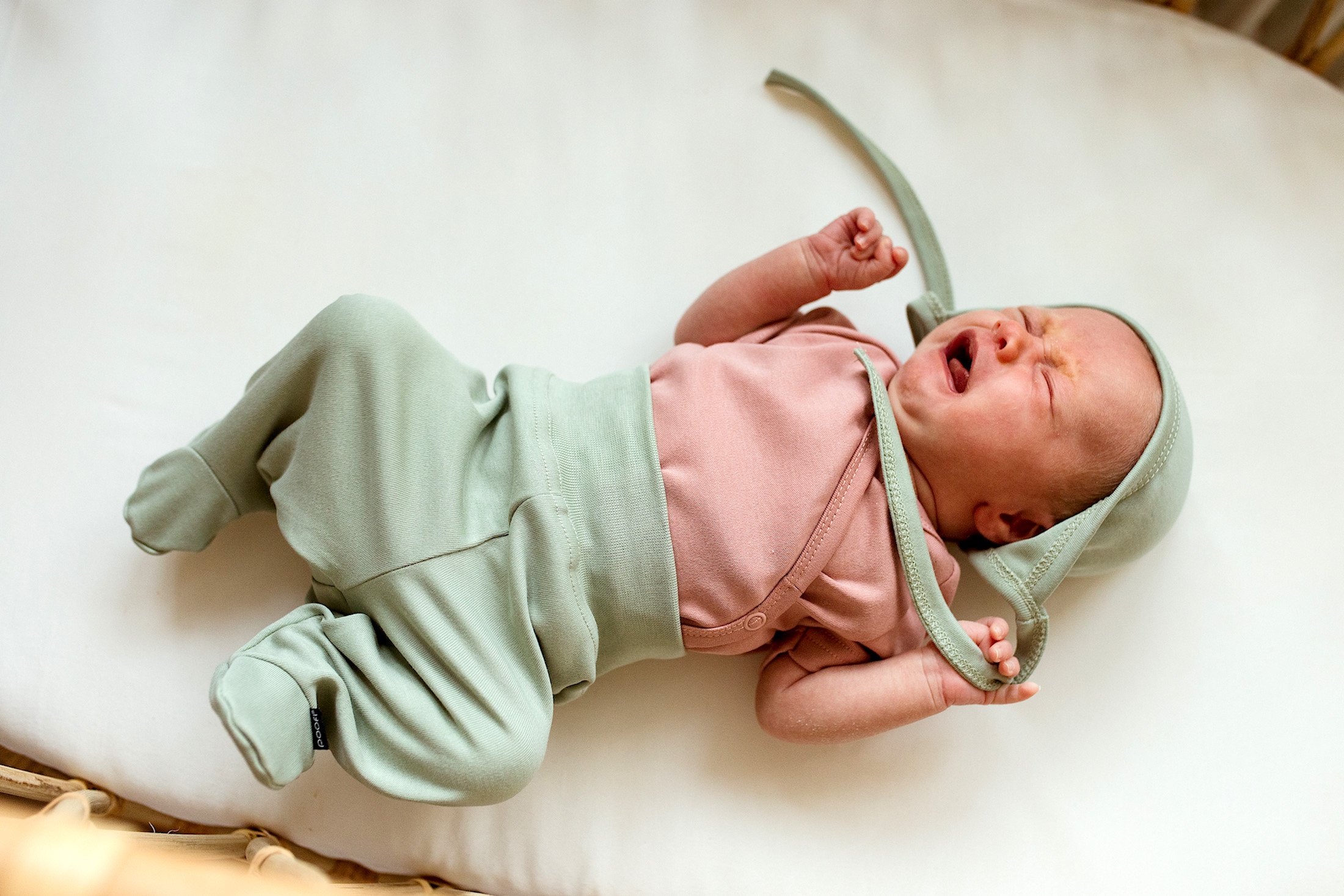 Ubranka uszyte są z bawełny organicznej, dlatego zadbać o ich pielęgnację. Zalecamy pranie w delikatnym płynie, w temperaturze maksymalnej 40°C. Aby cieszyć się długim użytkowaniem, sugerujemy korzystanie z niskich obrotów wirowania, maksymalne: 1000 obr/min. Nie suszyć w suszarce bębnowej i nie chlorować.