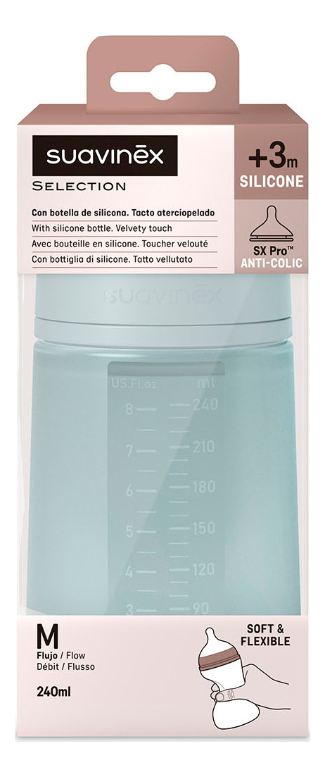 BUTELKA SILIKONOWA SX PRO ŚREDNI PRZEPŁYW 240 ML COLOUR ESSENCE KOLORY SUAVINEX