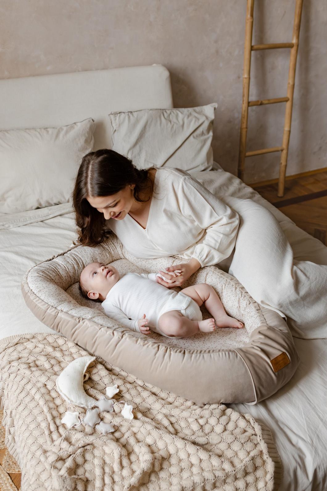 Dziecko przez dziewięć miesięcy przebywało w ciasnym, bezpiecznym środowisku. Kokon do spania nawiązuje do tego doświadczenia, otulając maluszka miękkimi brzegami i dając mu poczucie bliskości.
