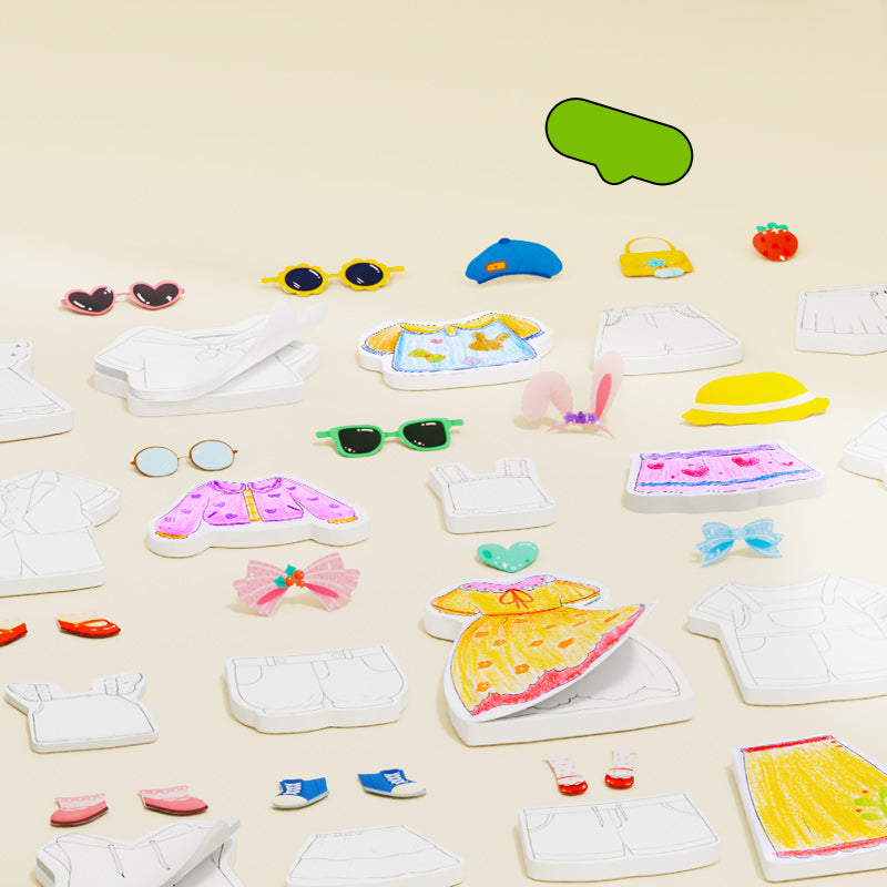 Kolorowanka przebieranka pozwala na kreowanie pięknych strojów za pomocą karteczek post-it.