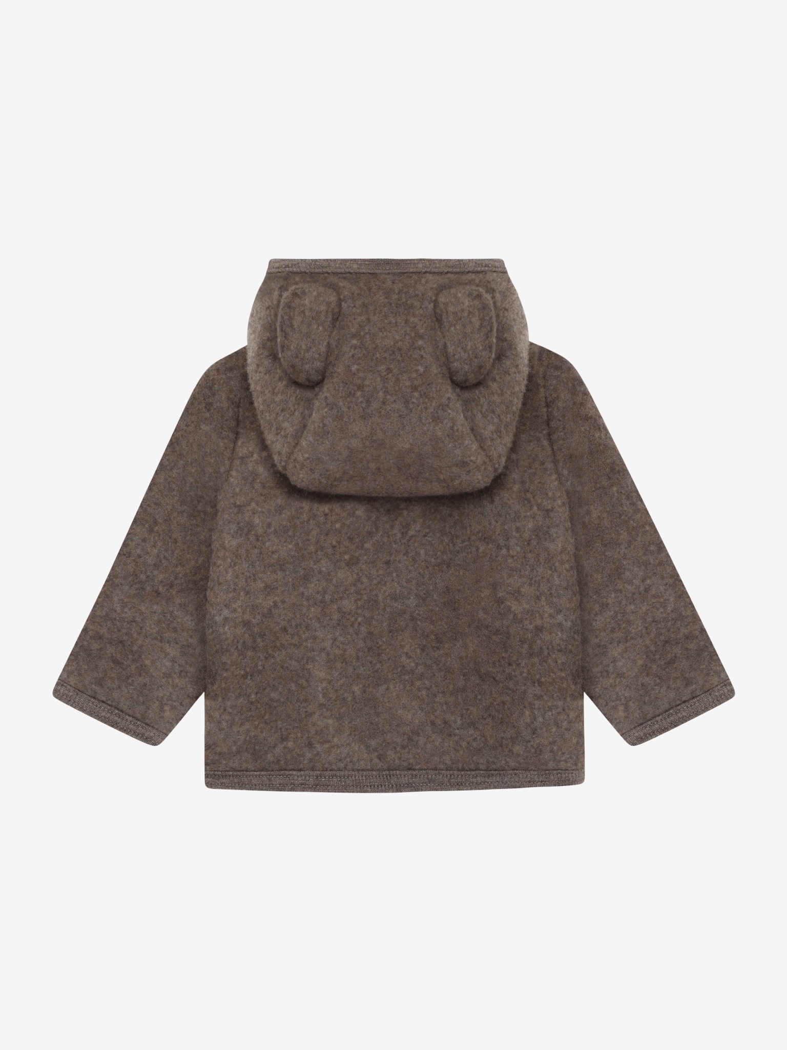 Kurtka Huttelihut ma stały kaptur z uroczymi uszami misia.