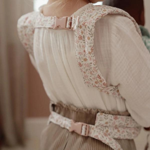 Nosidełko zostało zaprojektowane w uroczym kwiatowym wzorze Soft Flowers, charakterystycznym dla marki Little Dutch. Subtelna pastelowa kolorystyka sprawia, że zabawka nie tylko pięknie wygląda, ale także idealnie pasuje do innych produktów z tej samej kolekcji.