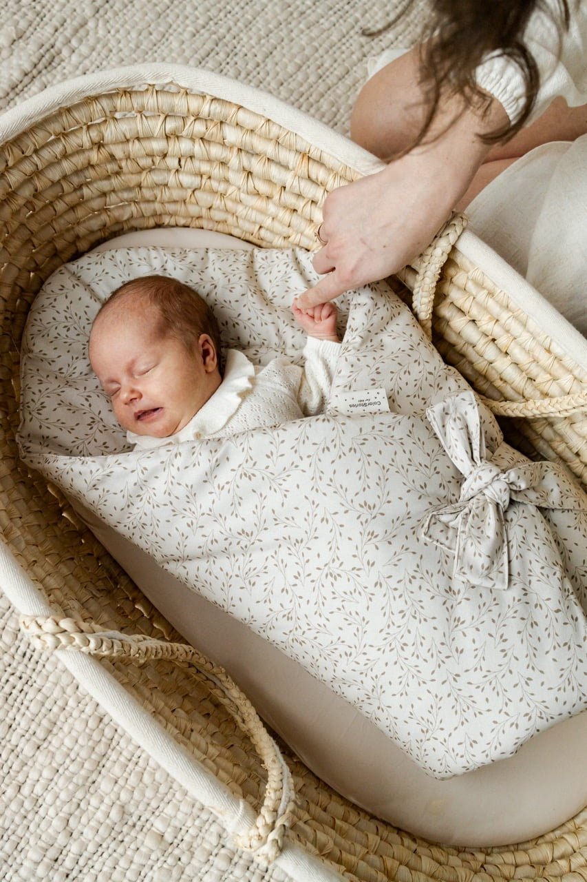 - Wiązanie na kokardkę – otulenie, które daje najwyższy komfort i bezpieczeństwo. Jedną z największych zalet rożka dla niemowląt ColorStories jest możliwość wiązania go na kokardkę, dzięki czemu możesz dostosować otulenie do potrzeb Twojej dzidzi. To pozwoli Twojemu maluszkowi poczuć się bezpiecznie, co z kolei przyczyni się do spokojnego snu. Każda mama wie, jak ważne jest, aby noworodek zaraz po urodzeniu miał zapewnione przytulne ciepło i poczucie bezpieczeństwa. Rożek niemowlęcy ColorStories idealnie spełnia się w tej roli!