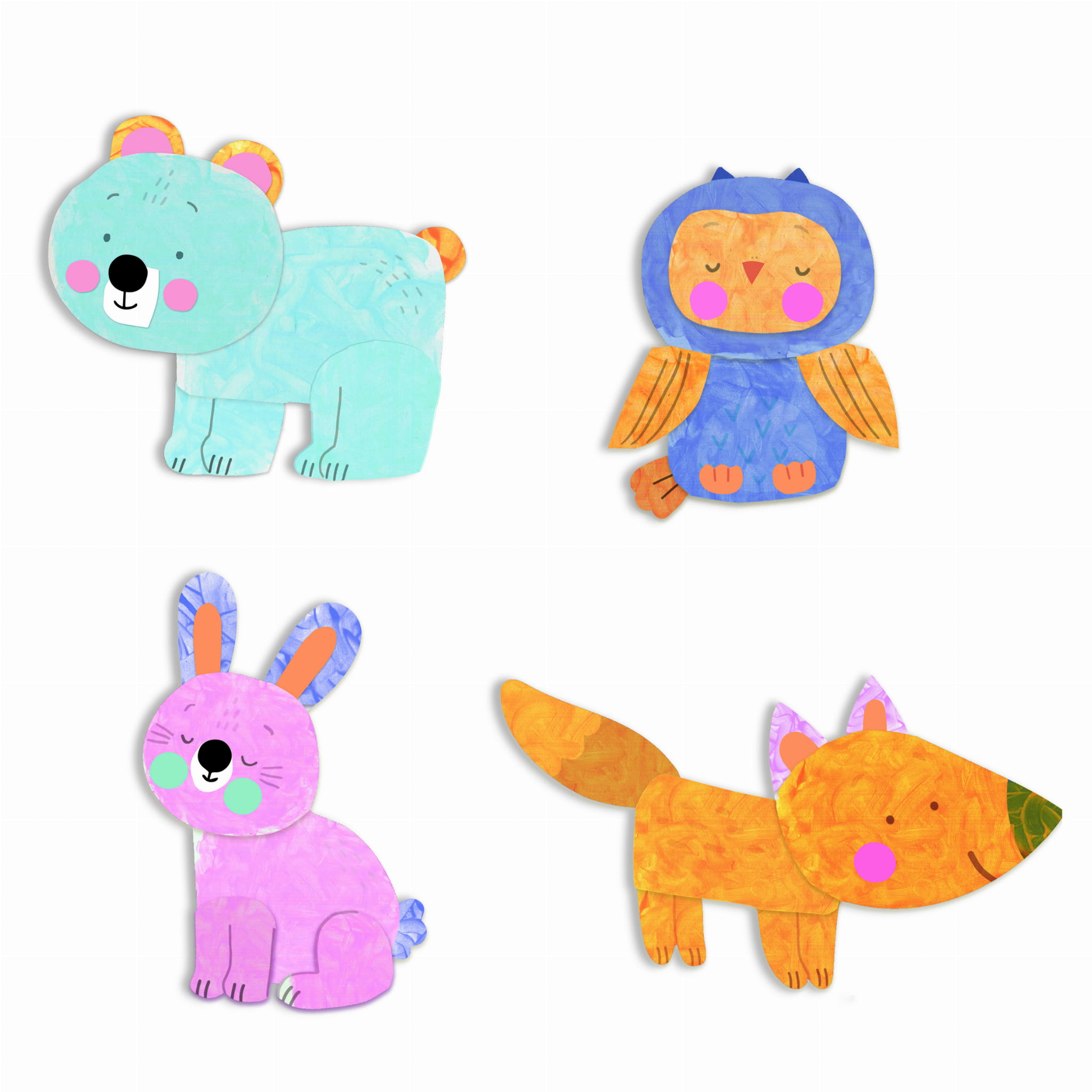 Aktywność malarska dla początkujących od 18 miesiąca życia. Z tym zestawem można stworzyć 4 urocze zwierzęta w 2D.