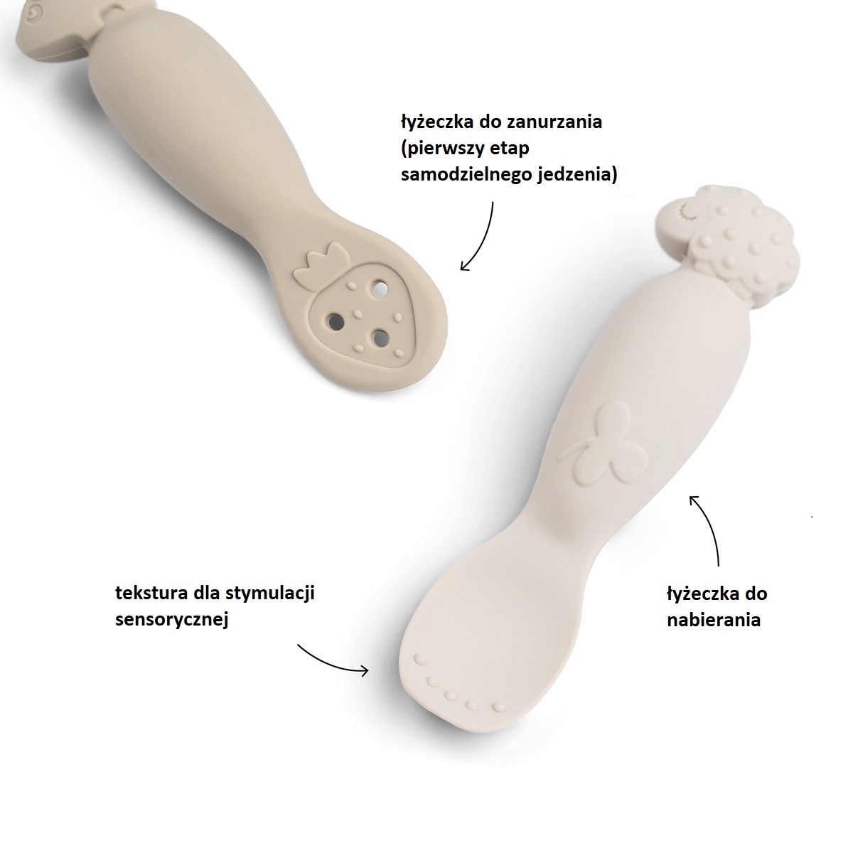 – miękkie łyżeczki idealne do nauki jedzenia we własnym tempie,